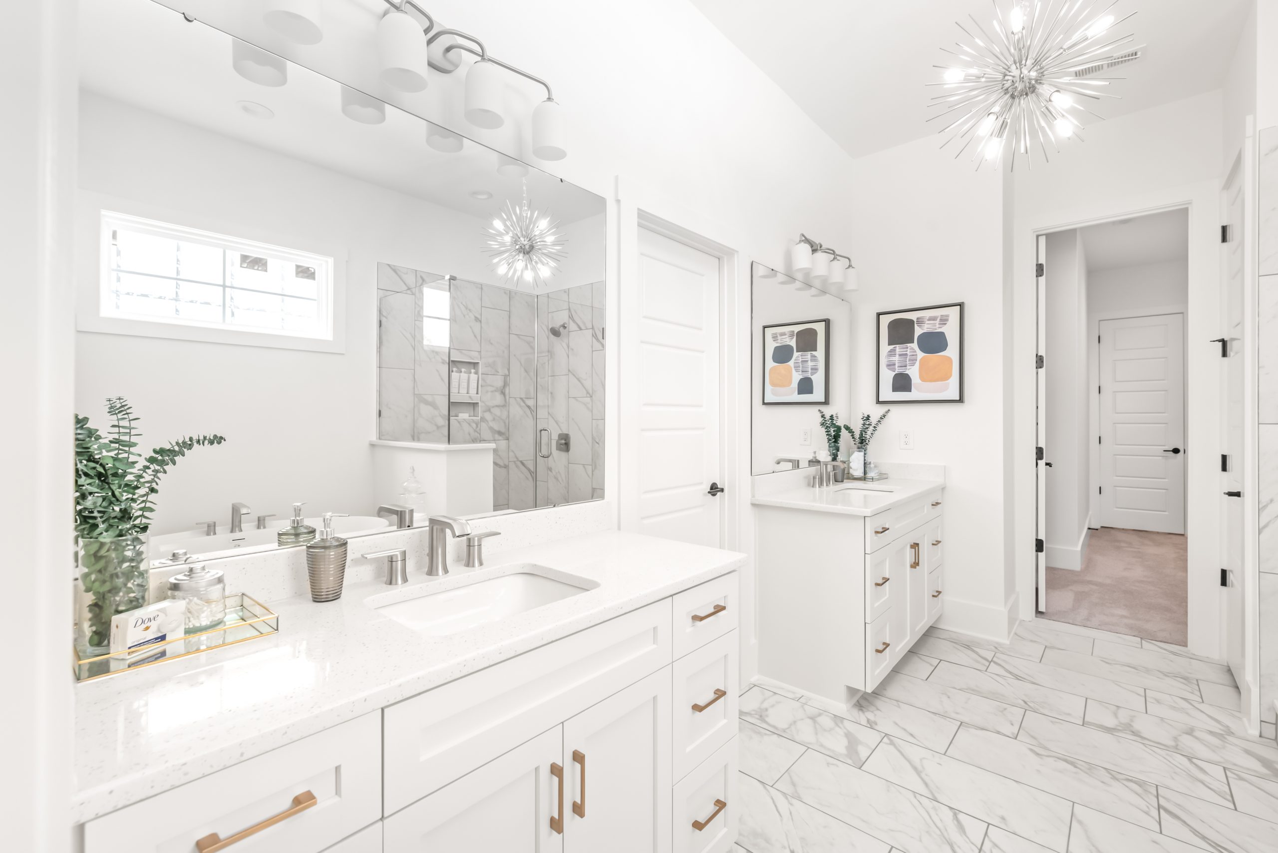 In the brand-new model, prospective buyers can see the optional studio/office space above the two-car garage, complete with a full bathroom and closet. This space is the dream addition for anyone working from home or needing a creative space to unwind.