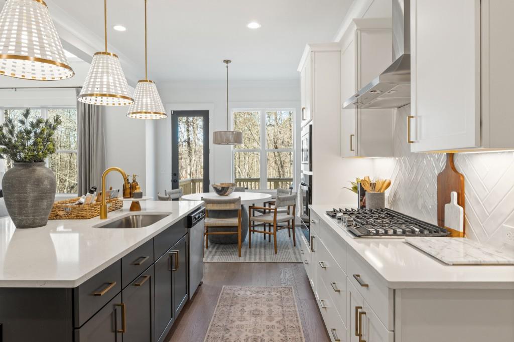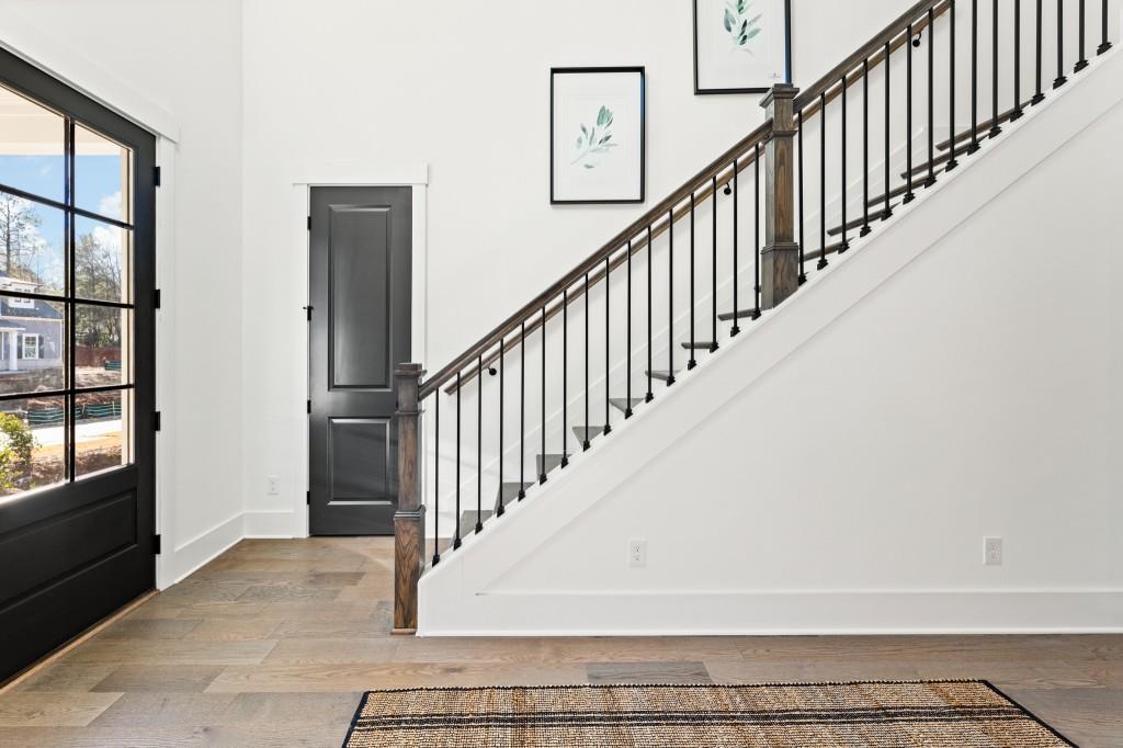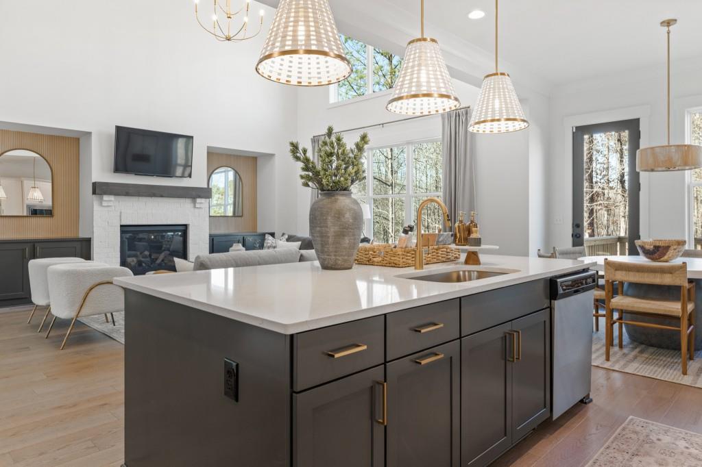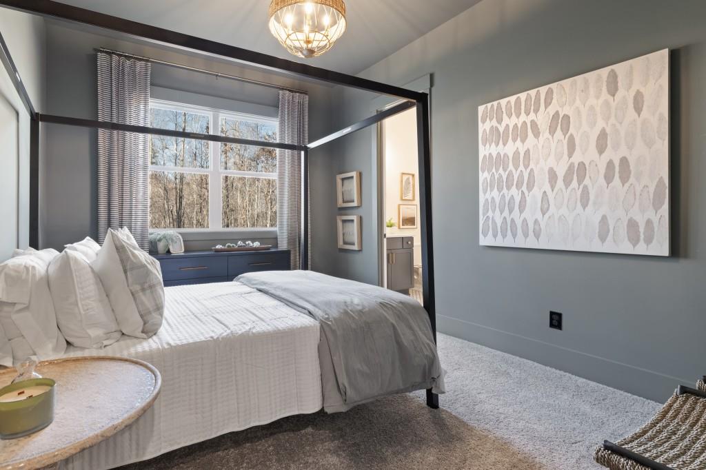 The Tamarack plan built by Peachtree Residential. This luxury master on main plan puts all others to shame! Walking through the 2-story foyer entry, you are transported into another world of elegance. You are greeted by a chic formal dining room which opens up into a towering 2-story family room filled with natural light from the striking transom windows. Looking out over the family room is the chef's paradise kitchen outfitted with the latest stainless steel appliances, oversized island, and even a hidden pantry! To the rear you will find your private retreat with grand vaulted ceiling and impressive cedar beams. The master bath is a private spa with huge walk in shower and drop in garden tub. To add to the main level, you will find a spacious secondary bedroom with private bath! Upstairs you will find 3 sizable bedrooms with 2 additional baths perfect for home offices, game rooms, or anything else you can think of. Out back is a cozy utopia with screened in patio and outdoor fireplace perfect for any season! The partially wooded backyard gives the privacy you desire while also accomodating for a sizeable yard! Come discover all this exceptional lakeside community has to offer! Ask us about our AMAZING incentives with use of preferred lender and binding contract by 10/31/2025. Stock photos*