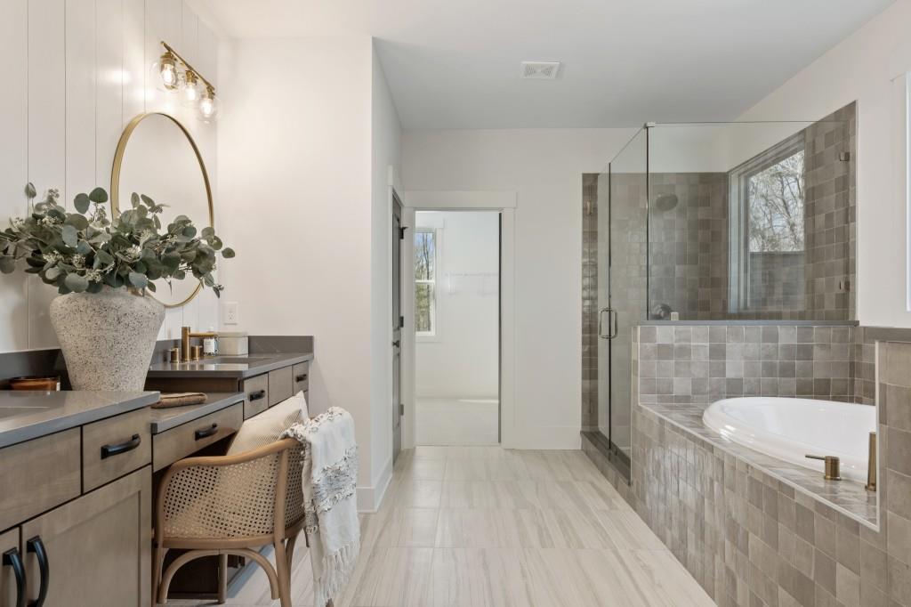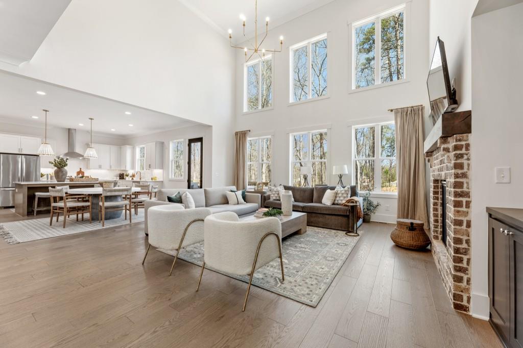 The Bellville Plan by Peachtree Residential. Our official model home! Quick Move-in! This luxurious basement estate is outfitted with all the most beautiful design features - no detail has been spared. You won't want to miss this! Welcomed in by an expansive foyer, on either side you will find a formal dining room big enough for those holiday dinners and a private in-law suite w/ wet bar perfect for guests. Continuing into the home, a towering 2-story family room w/ brick surround fireplace is supplied with vibrant natural light from the huge wall of windows. The family room is overlooked by a sparkling chef's paradise kitchen with wall oven, gas cooktop & vent hood, and gorgeous interior design selections/fixtures. Upstairs your private retreat awaits. The large owner's suite is decked out in the highest fashion with beamed ceiling leading to a spa-like bathroom w/ tile shower & garden tub, make-up counter, chic framed mirrors, and an extensive walk in closet. Rounding out the second level you will find 3 additional spacious bedrooms and 2 bathrooms. Out back is a cozy grilling deck waiting for you to cook up those seasonal meals and enjoy your coffee with the sunrise. All of this on an enormous corner lot w/ a basement makes it THE perfect home. Call TODAY! Ask us about our rates as low as 3.99%* with use of seller's preferred lender, Movement Mortgage, with binding contract by 03/15/2026.
